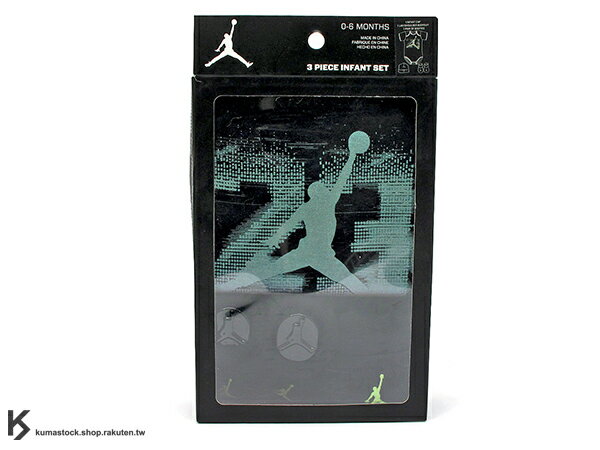 kumastock 特別入荷 0-6 個月嬰兒專用 NIKE AIR JORDAN 3 PIECE INFANT SET 三件組 黑薄荷綠 FLIGHT 飛人 喬丹 嬰兒服 包屁衣 嬰兒帽 嬰兒襪 最佳滿月禮 AJ (IBSPJ1593-023) !